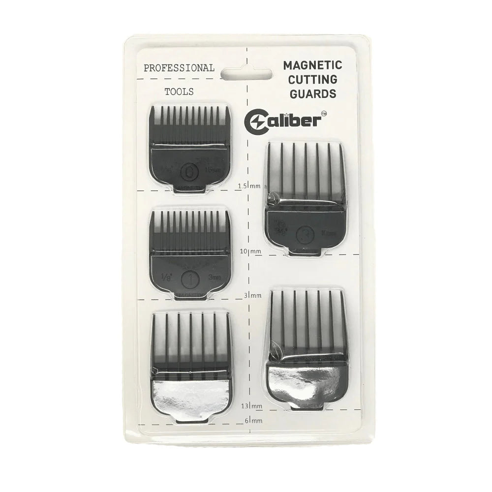 Améliorez votre arsenal de toilettage avec les protections magnétiques Caliber, un ensemble de 5 protections universelles conçues pour s'adapter aux lames de calibre 50 Cal, 357 mag, 45 ACP et .44 Mag.