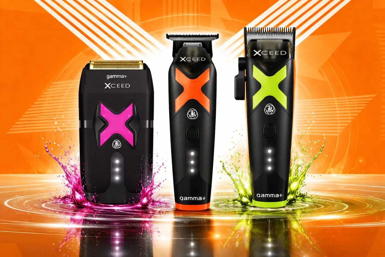 Upgrade your grooming setup with the Gamma+ XCeed 3-Piece Professional Set, featuring a high-performance clipper, precision trimmer, and ultra-close foil shaver. Engineered with Gamma+’s patented IN2 Vector Motor technology, each tool delivers powerful, smooth, and consistent cutting performance across all hair types.