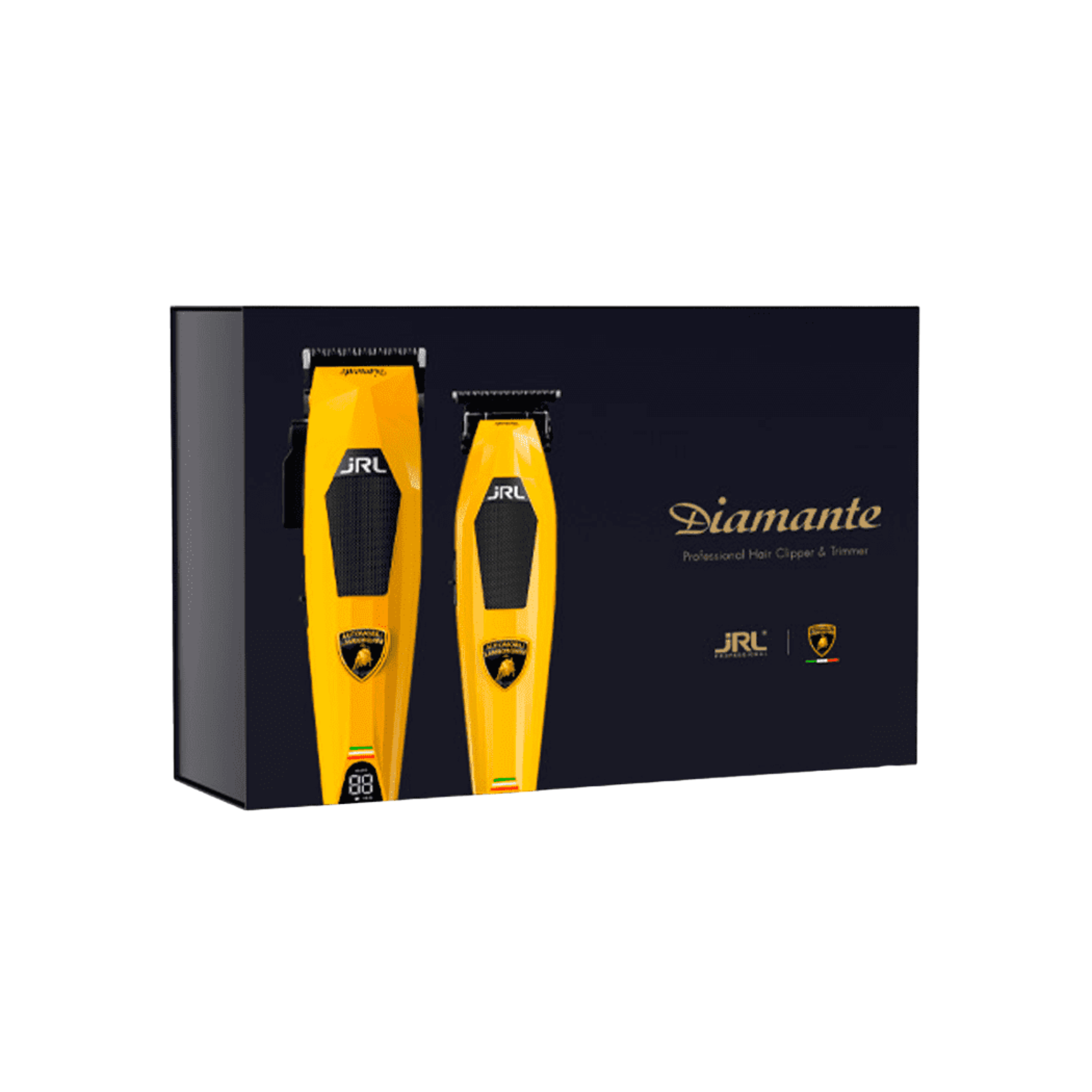 The JRL x Lamborghini Diamante Collection combines cutting-edge engineering with Lamborghini’s iconic design philosophy, creating the ultimate clipper and trimmer set for elite barbers and stylists. Crafted for those who demand uncompromising performance, this duo delivers supercar-level speed, torque, and precision in every cut.