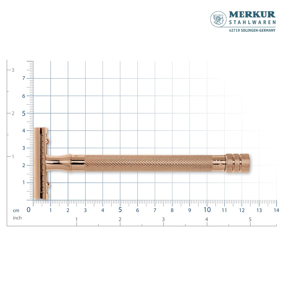 Rasoir Merkur DE, peigne droit, manche long, chrome brillant/PVD or rose
