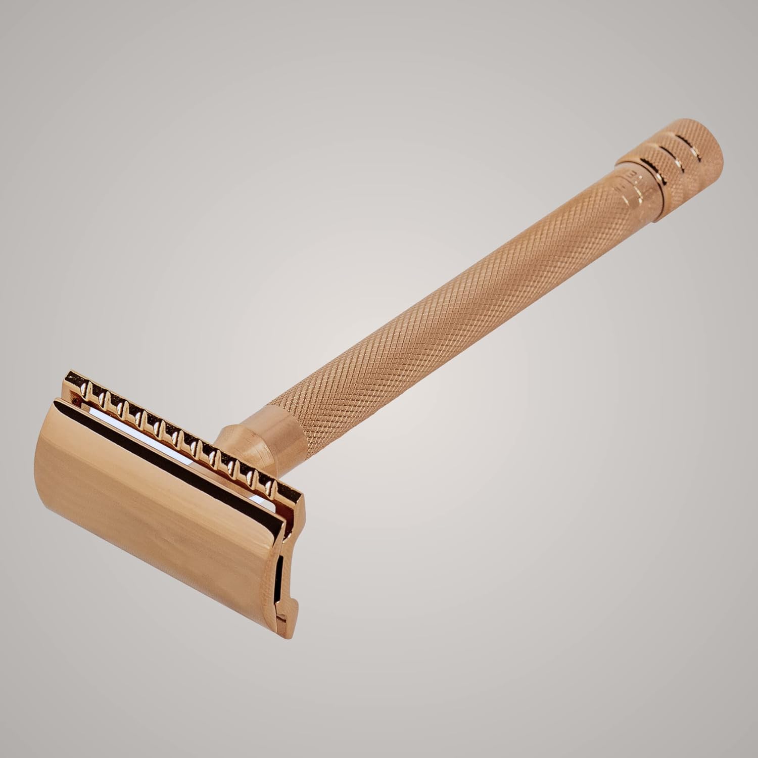 Finition or rose (revêtement en cuivre) : Orné d'un superbe revêtement PVD en or rose, ce rasoir respire l'élégance et la sophistication. La finition or rose ajoute une touche de luxe à votre routine de soins, rehaussant l'attrait esthétique de votre expérience de rasage.