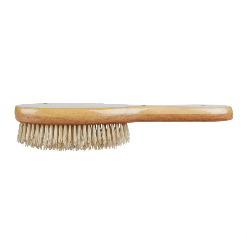Filled with the finest pure white natural bristle to promote natural shine whilst distributing natural oils. The natural bristle is meticulously wire laid into the brush by hand using an age-old method known as hand drawing. The brush is made from beechwood with a satinwood back. The LHS5 hairbrush was recently featured on the programme 'How It Made',