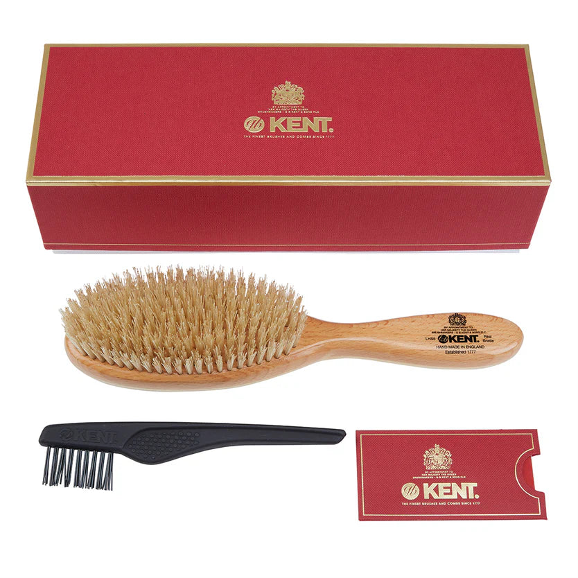 Kent Handmade Satinwood Pure White Bristle Oval Hairbrush